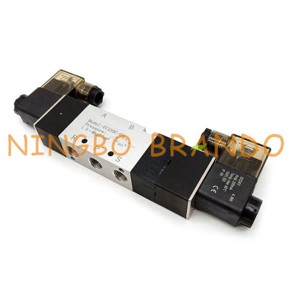 This is 4V330C-08 AirTAC type pneumatic solenoid valve, 1/4'' inlet, outlet & exhaust port size, double solenoid, 5 way 3 position, 12VDC, 24VDC, 110VAC, 220VAC volatges for you to choose, other voltages can be customized. Brando is a Pneumatic Valve manufacturer and exporter in Ningbo, China, which has more than 10 years experience. The most common types are 2/2 way, 3/2 way, 5/2 way and 5/3 way. The valves can be single or double acting (one or two solenoids).